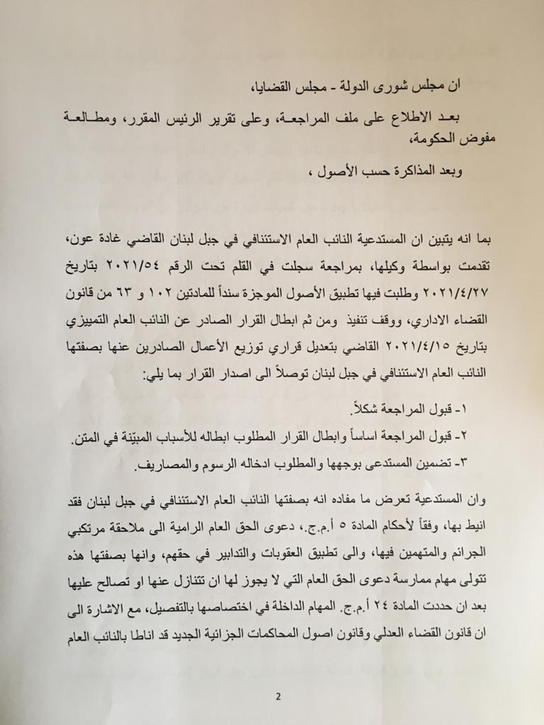 مجلس شورى الدولة يردّ دعوى القاضية عون