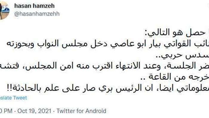 نائب لبناني مسلح يدخل جلسة البرلمان والأمن يخرجه
