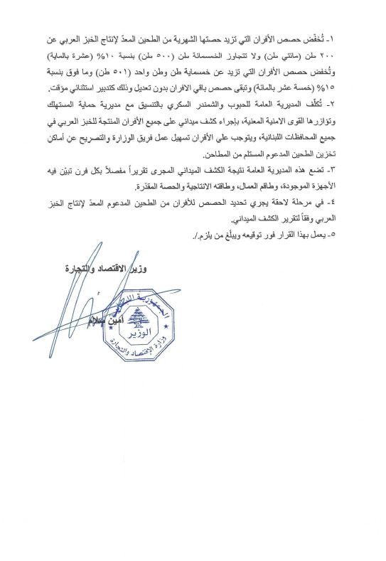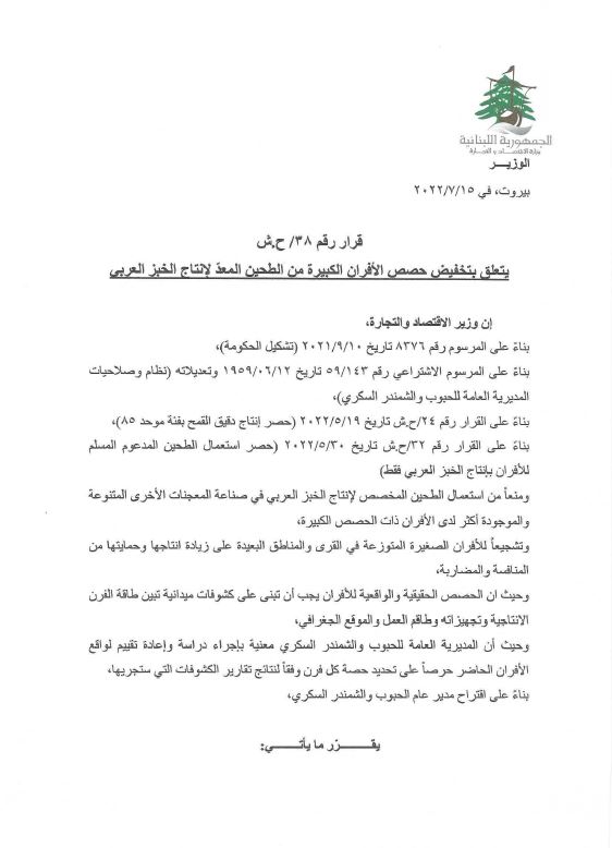 قرار بتخفيض حصص الأفران الكبيرة من الطحين