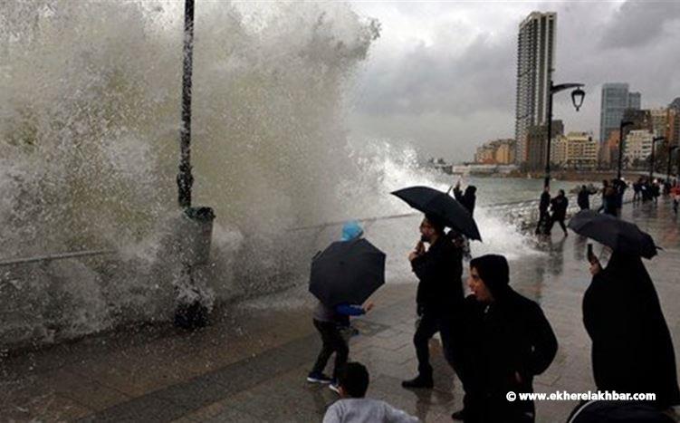 -الخميس: غير مستقر مع امطار متفرقة (تشتد احياناً) وثلوج على ١٧٠٠متر، والحرارة تتراوح على الشكل التالي : ١١ و ١٨ ساحلا وبين ٣ و ١٣ بقاعاً وبين ٦ و ١٠ على الـ ١٠٠٠ فيما الرياح جنوبية غربية نشطة وسرعتها بين ٢٠ و ٥٠كم/س