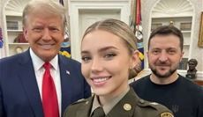 كما حصدت صور السيدة الشقراء بزيها العسكري إلى جانب مقاتلة F 22 رابتور، أو مع الرئيس الروسي فلاديمير بوتين وترامب أيضاً، فضلا عن الرئيس الأوكراني فولدومير زيلينسكي آلاف الإعجابات.