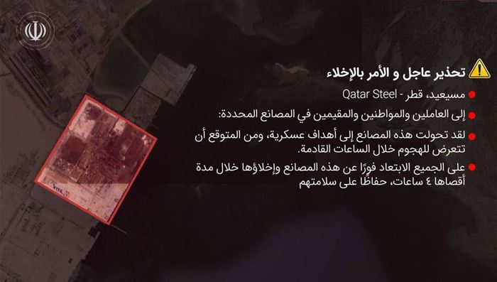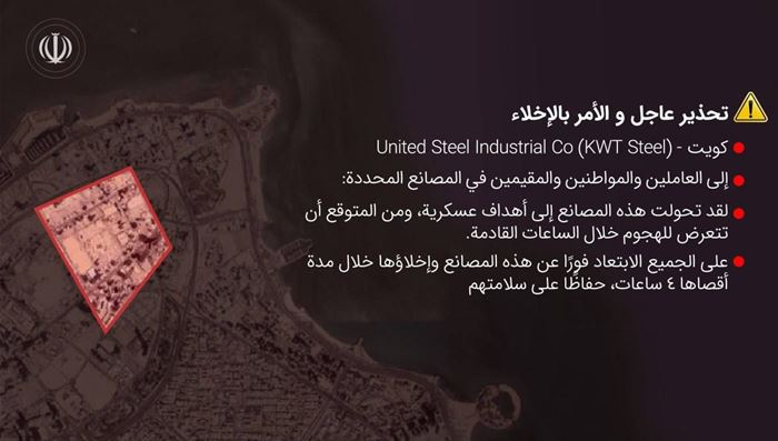 في تصعيد خطير وغير مسبوق، نشر الحرس الثوري الإيراني صورًا مرفقة بتحذيرات عاجلة تدعو إلى إخلاء منشآت صناعية في خمس دول خليجية، بزعم أنها تحولت إلى “أهداف عسكرية” وقد تتعرض لهجمات خلال الساعات المقبلة.